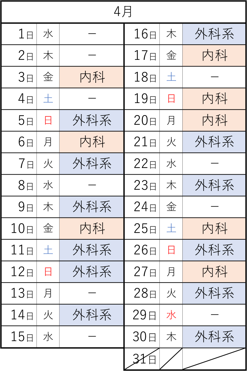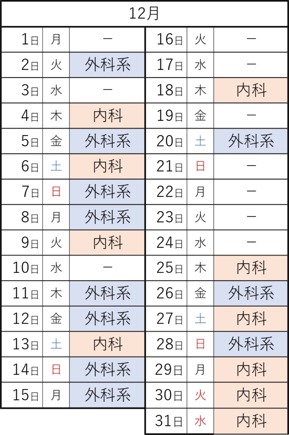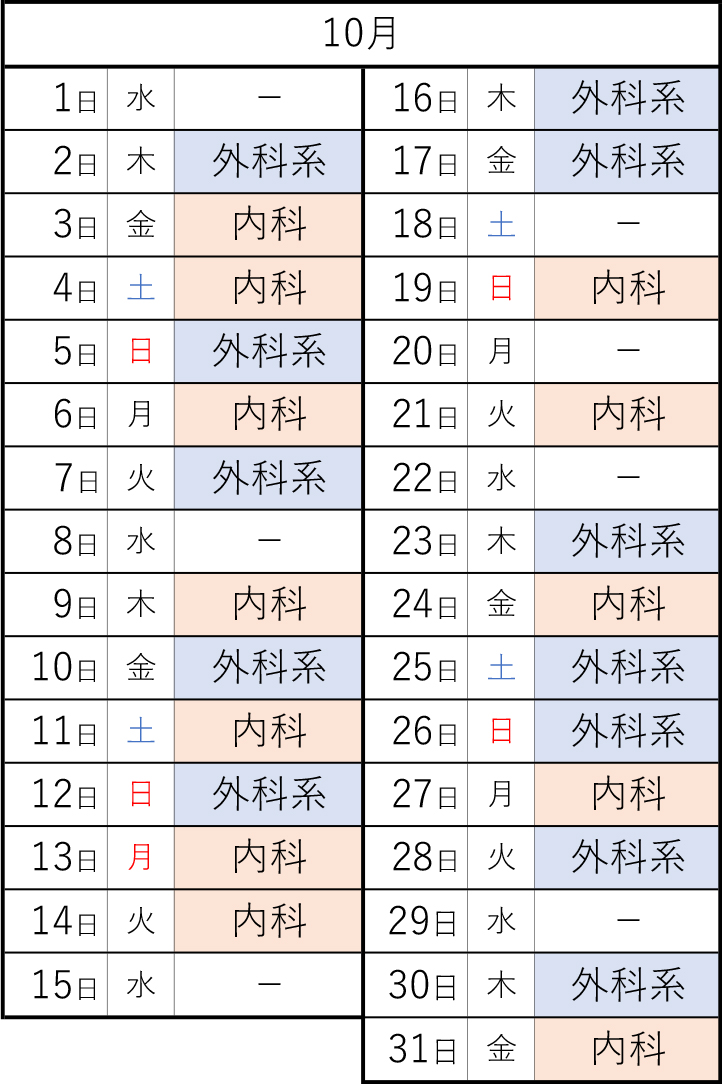 ※当番日でも受診できるとは限りませんので、必ず来院前にお電話ください。